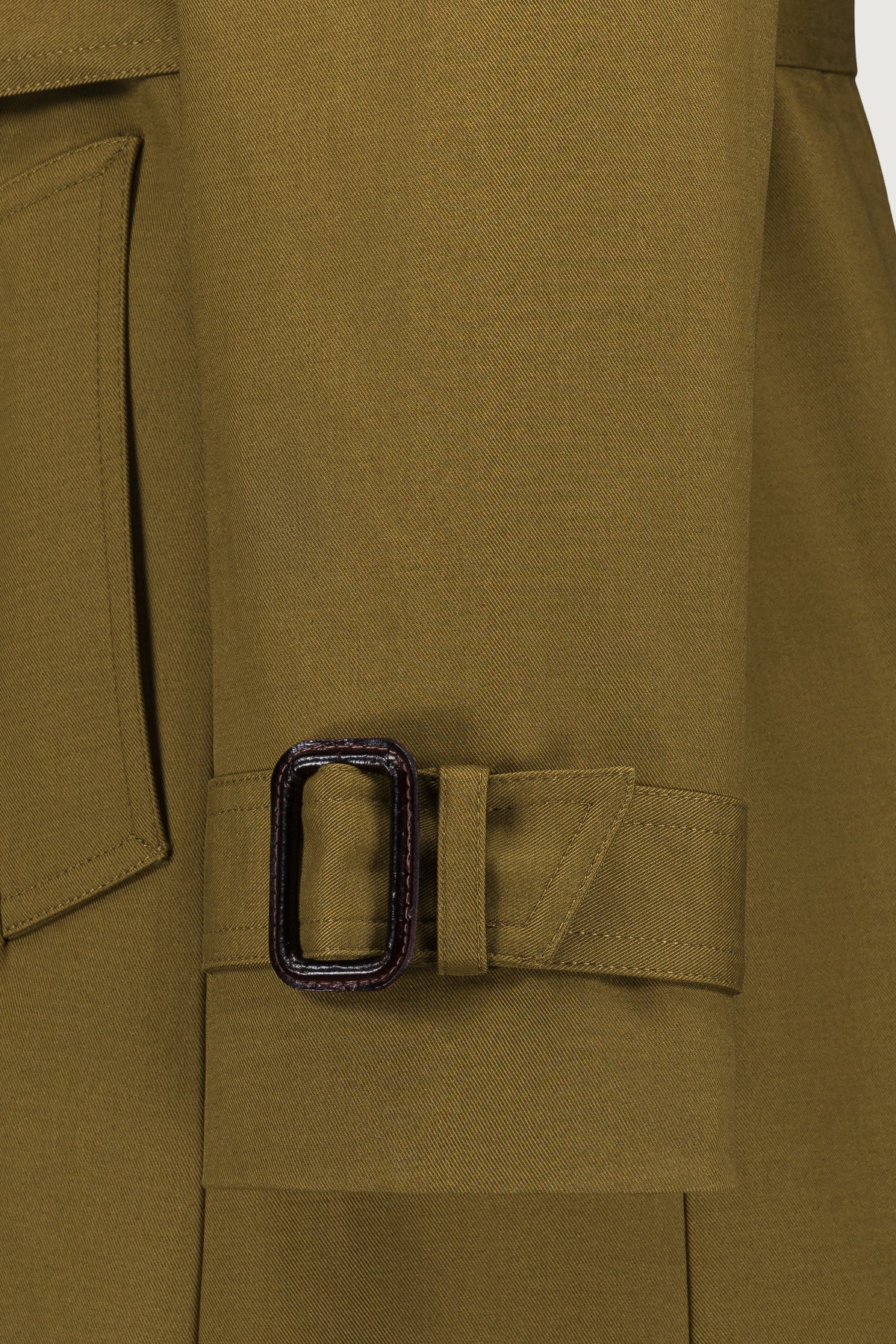 La coupe du trench a été étudiée pour être ajustée et ceinturée, soulignant la silhouette avec justesse sans jamais contraindre le mouvement.