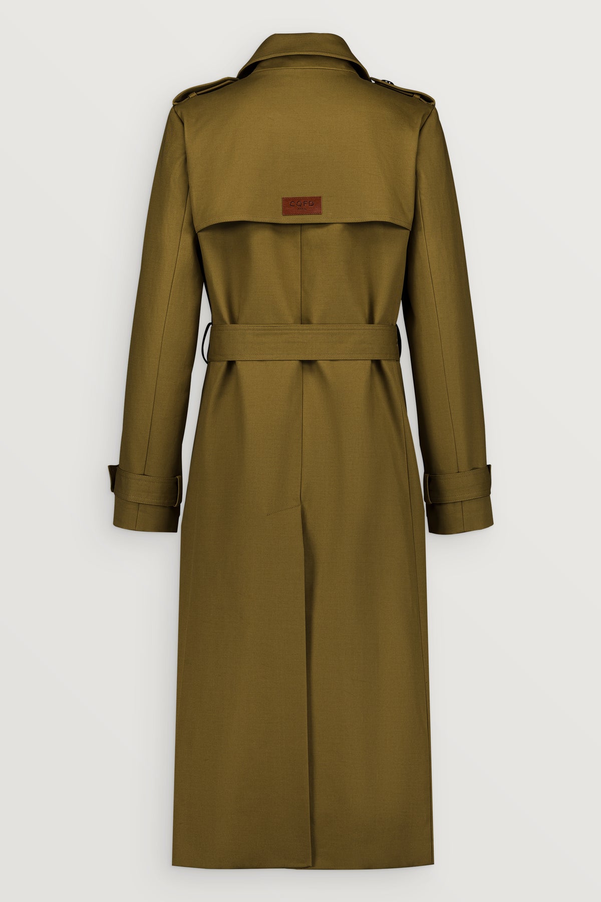Le trench classique, réalisé dans une gabardine de coton italienne très dense et proposé en édition limitée, incarne une élégance intemporelle portée par une démarche responsable.