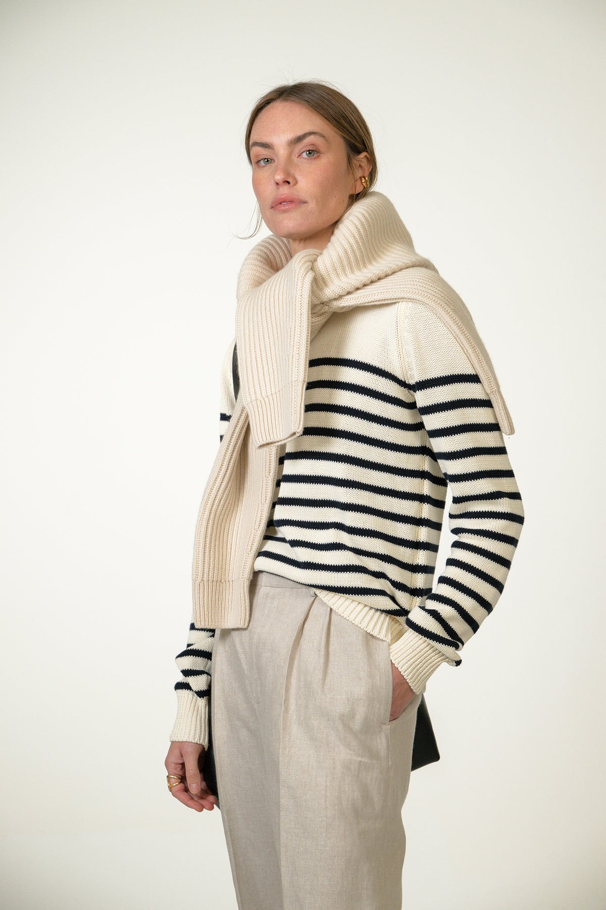 Découvrez la marinière d’exception, tricotée dans notre prestigieux atelier italien, où l'excellence et le raffinement sont les maîtres-mots.