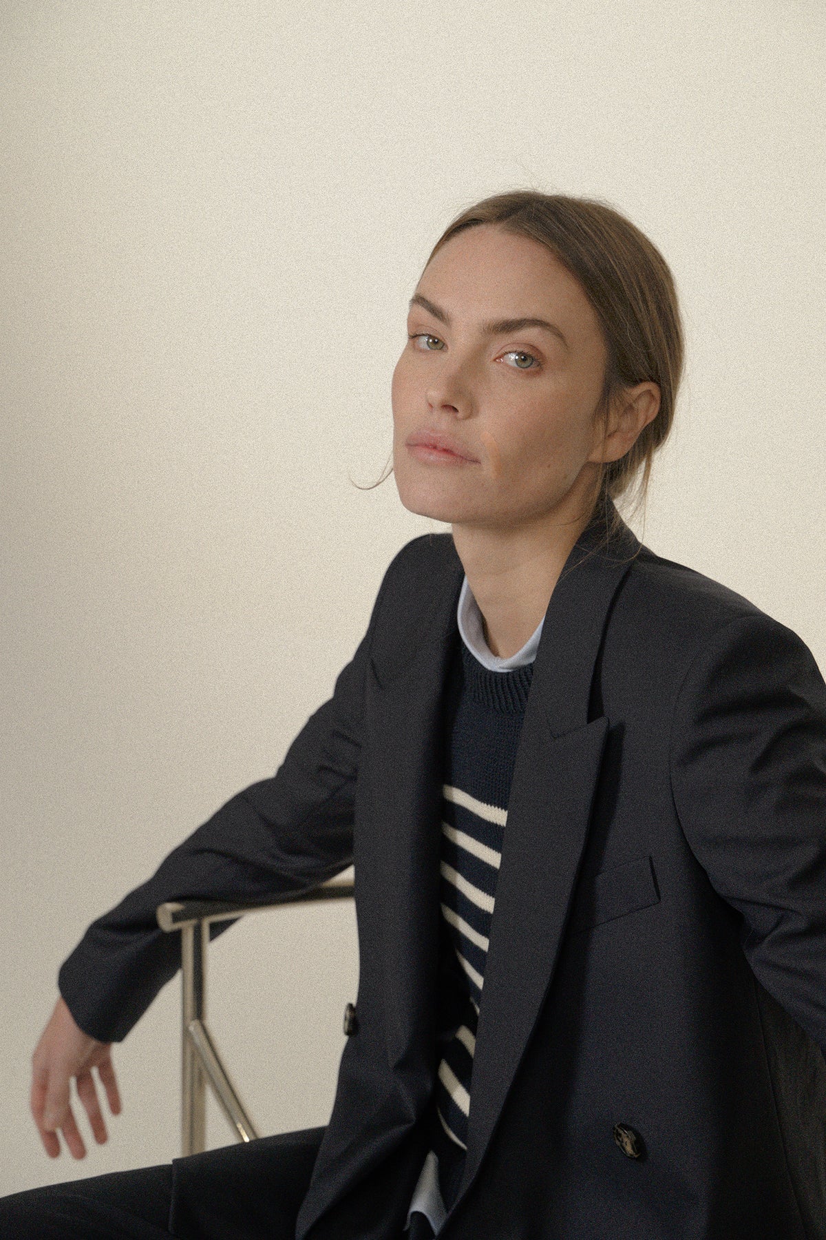 Inspirée par l’univers masculin, la marinière CQFD Paris est repensée pour sublimer les courbes féminines avec un équilibre parfait entre structure et volume. Les boutons gravés ajoutent une touche sophistiquée, témoignant du souci du détail propre à la Maison CQFD Paris.