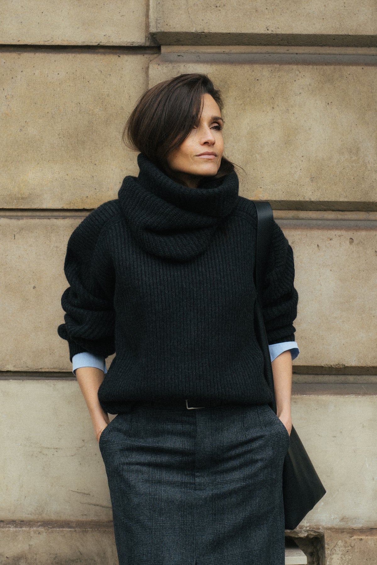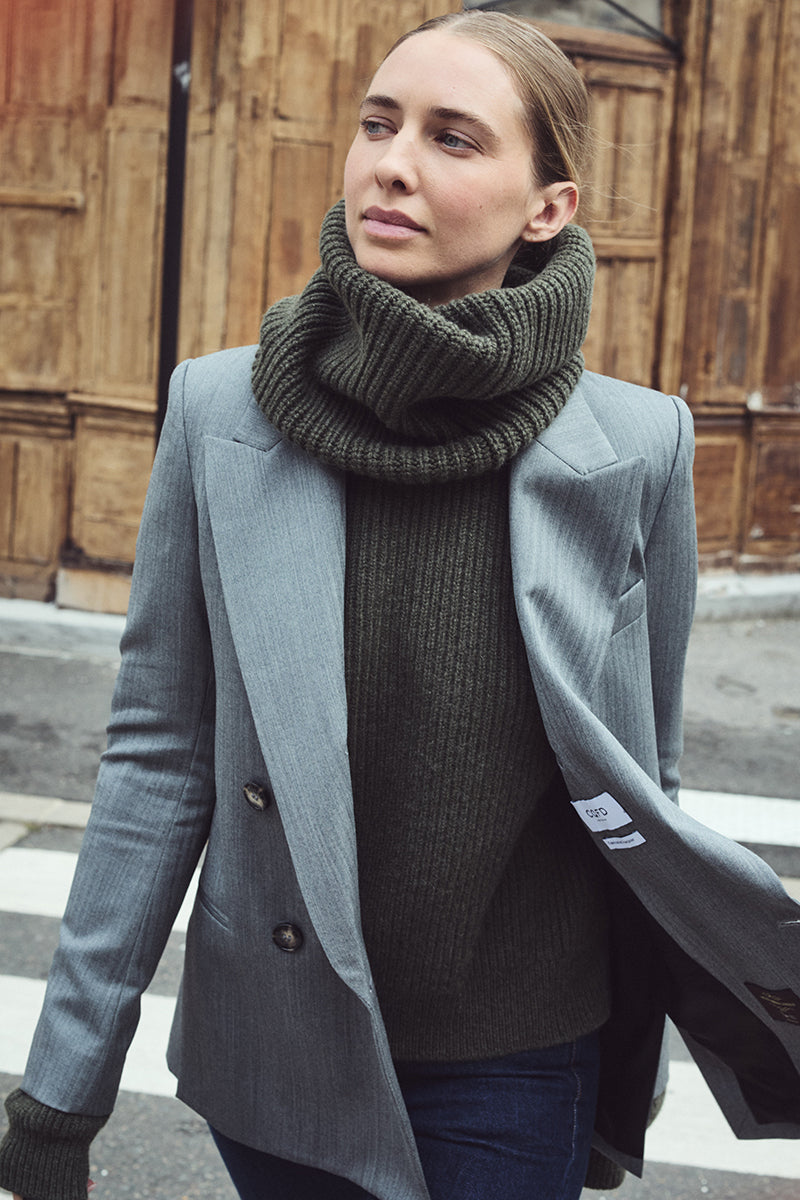 Le cache-cou présente une coupe confortable et enveloppante à taille unique : il s’adapte naturellement à toutes les morphologies et se porte idéalement avec notre pull Boxy.