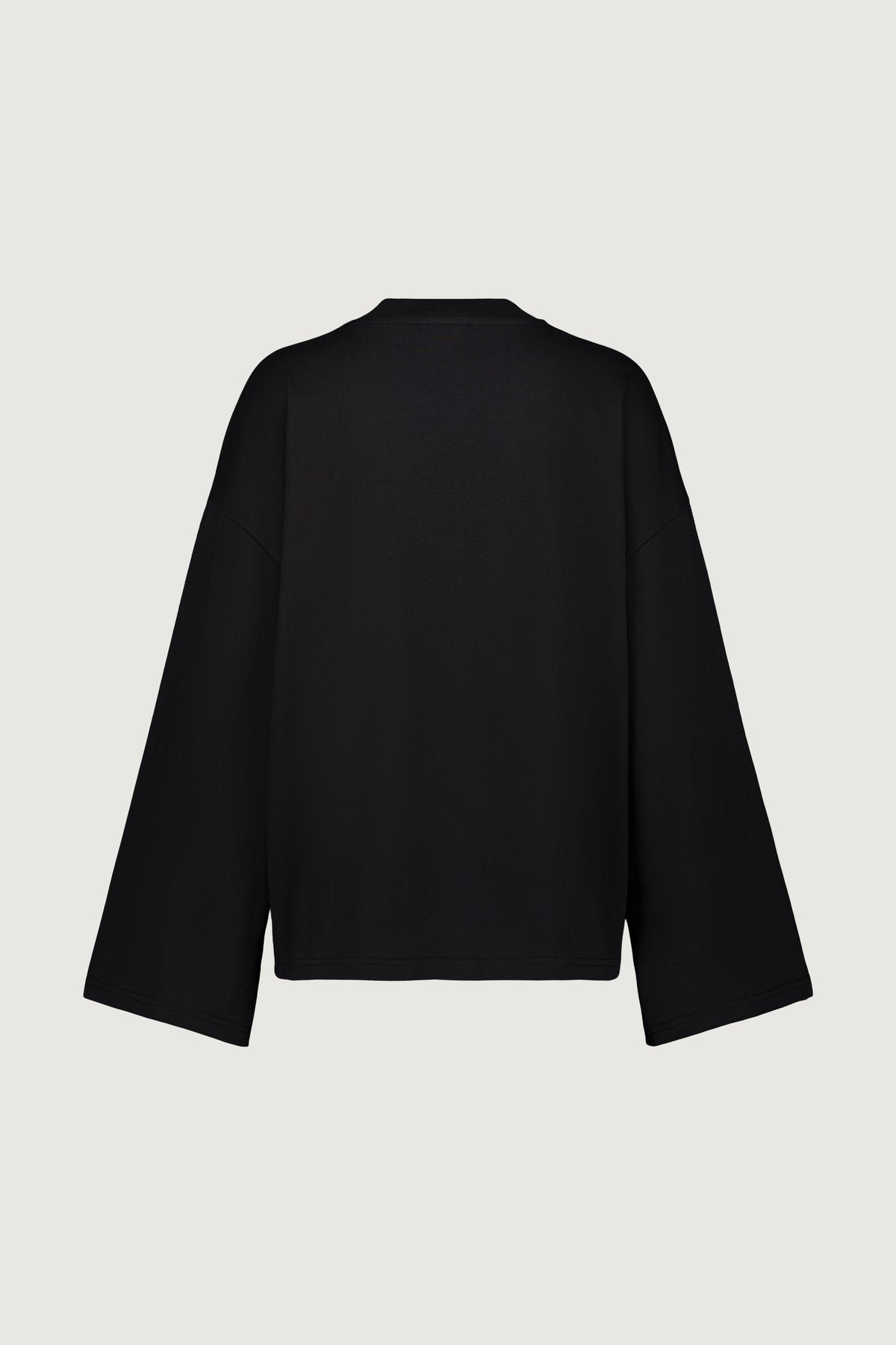 Ses manches longues et larges, à la longueur idéale, peuvent se porter retroussées pour un style plus affirmé et résolument moderne.